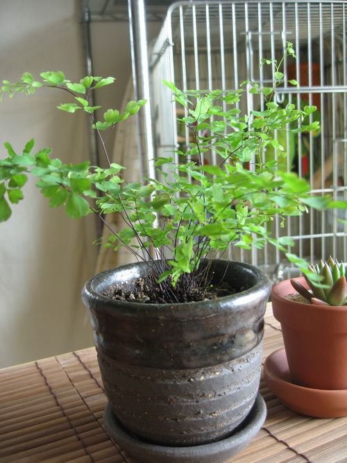 前使ってたテカテカの白陶器は通気性が悪そうなので素焼きの鉢に植え替えた。